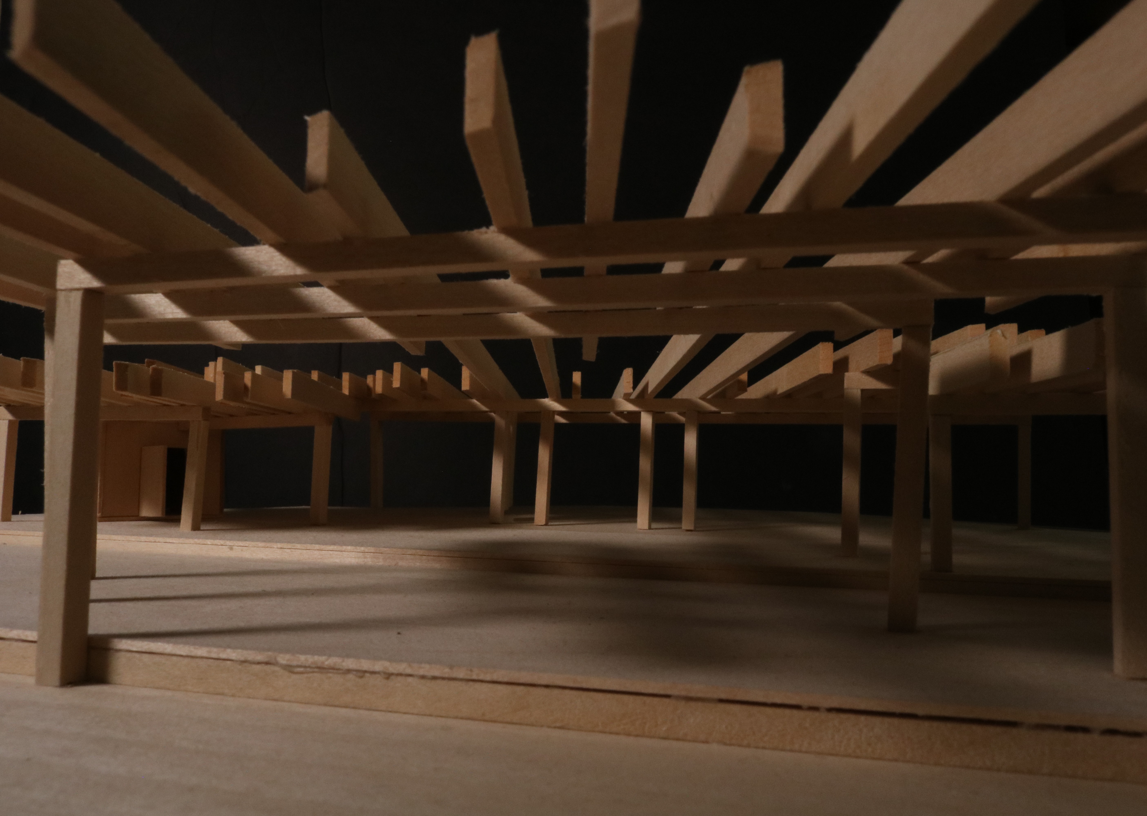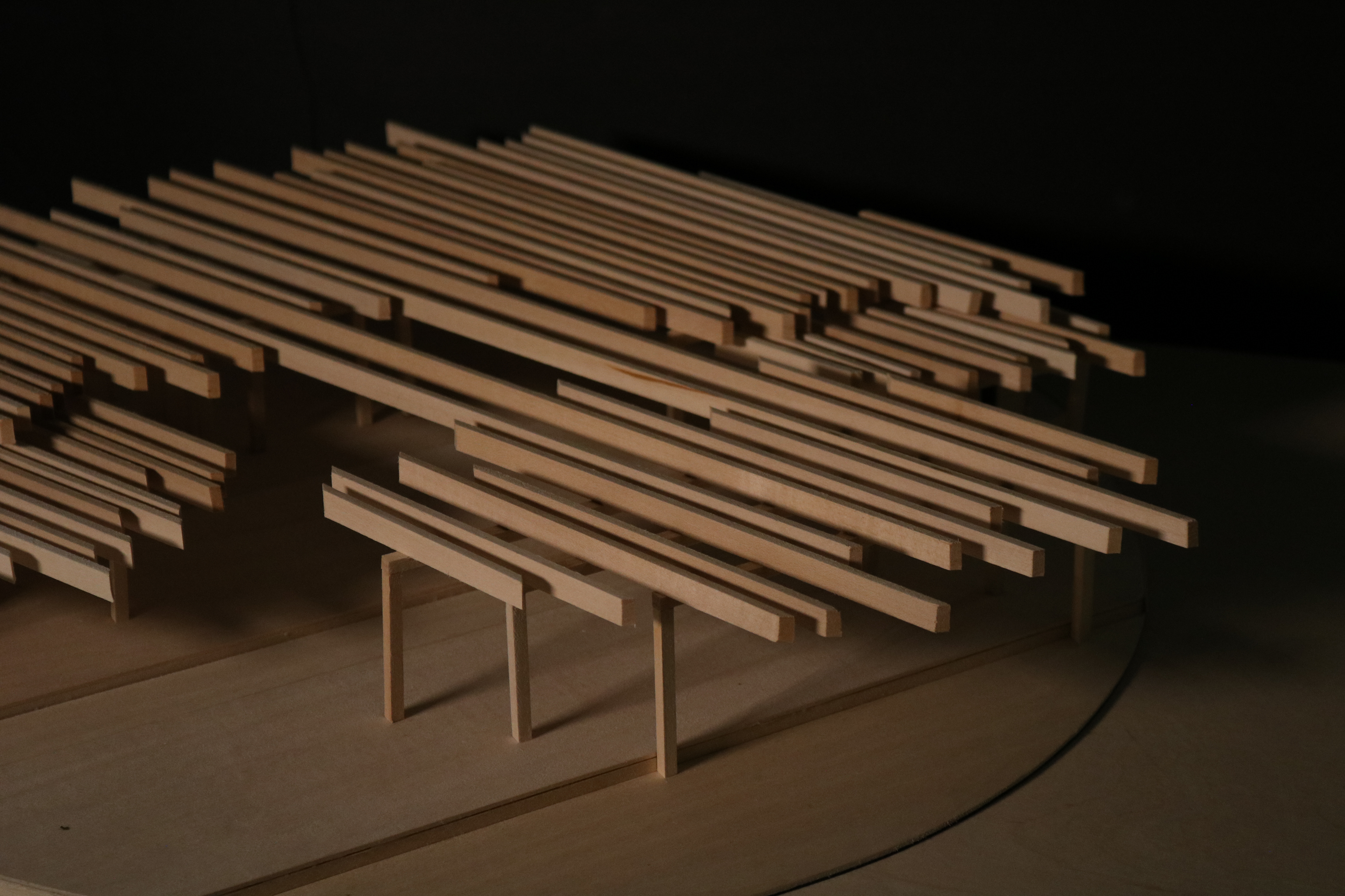 The Parallel Pavilion is inspired through the analysis of Charles Correa’s Ramakrishna House, exemplifying the use of space and design through multiple series of diffused parallel lines. The columns and support beams are specifically designed to be parallel to each other, while the roof slats are designed to complement the columns and beams in a perpendicular manner, while also being parallel to each other.